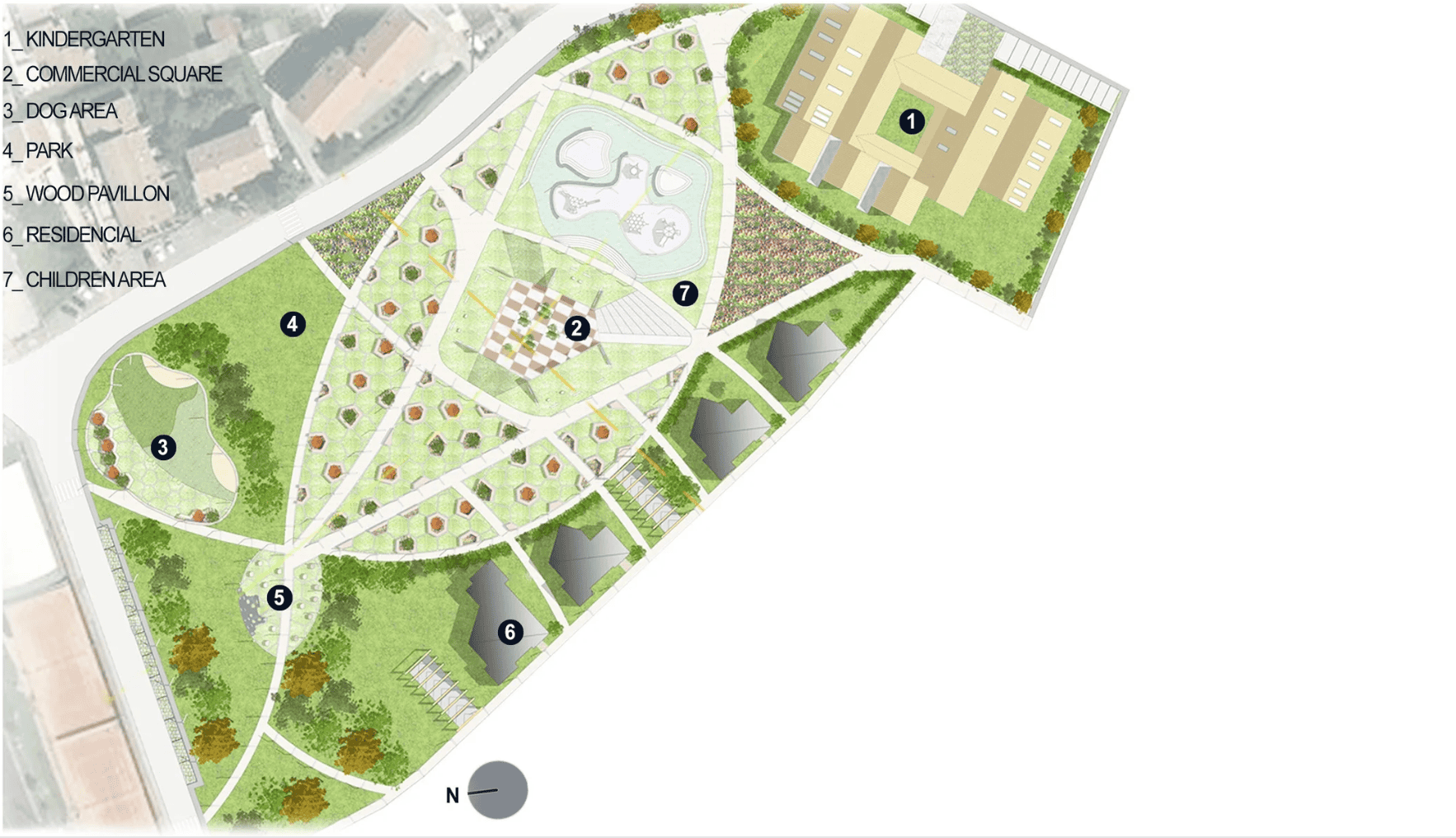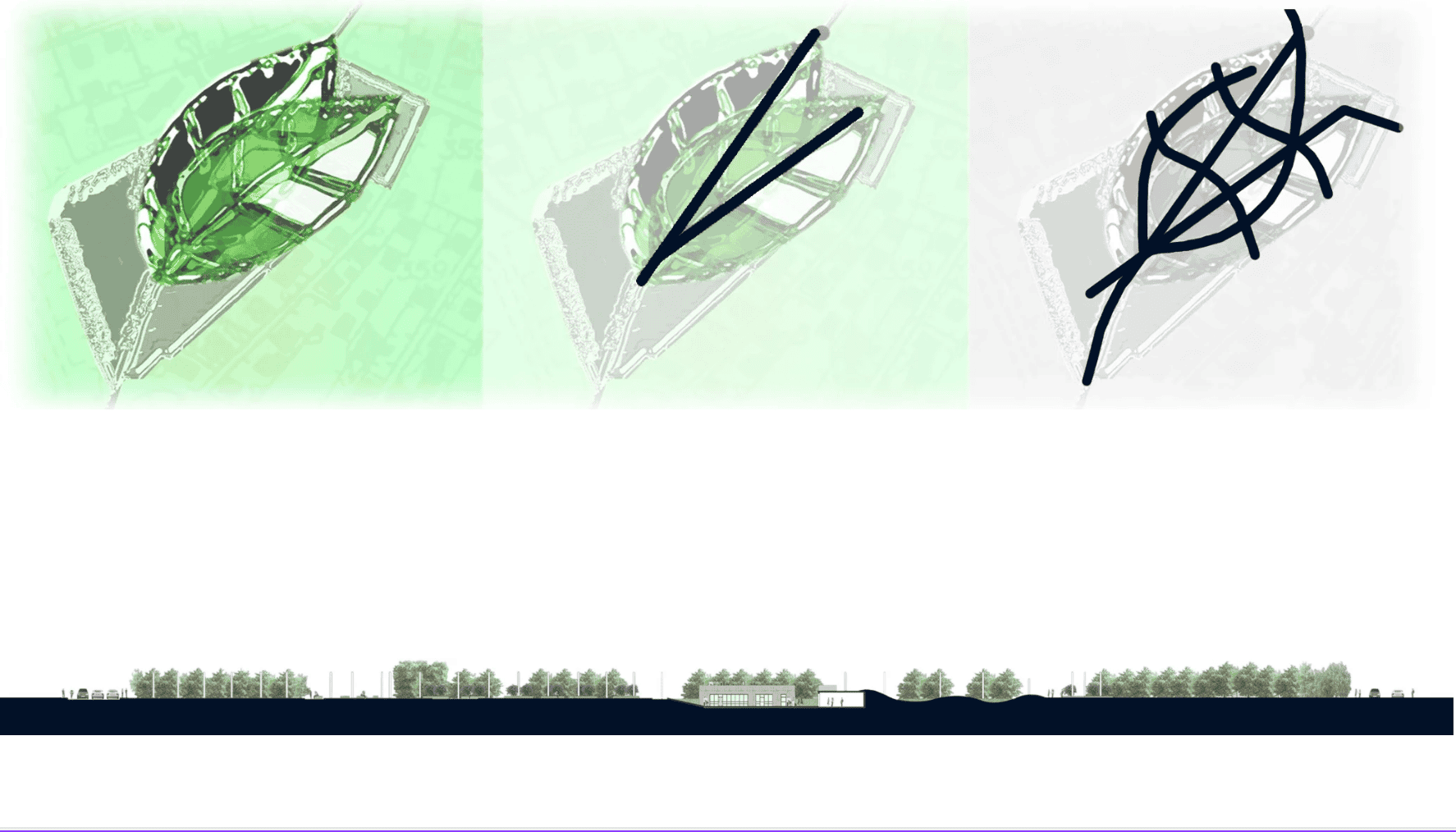 Das Grün ist das wichtigste Element des Projekts. Daraus entsteht die Idee des „Leaf’s Park“ (Blätterparks) – Sichtbeziehungen, Verbindungen und Grün vereint in einem einzigen Konzept.